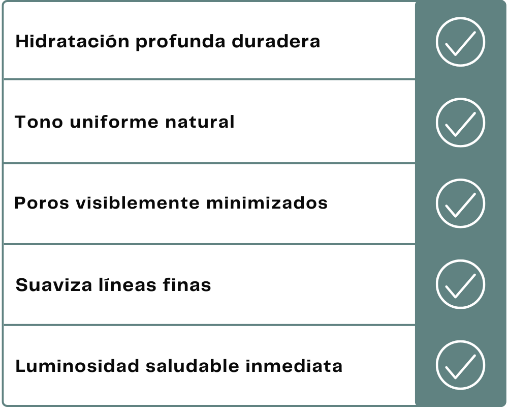 Su textura ligera y sedosa se funde al instante, dejando una sensación fresca y cómoda durante todo el día. No es grasosa ni pesada, y brinda un acabado luminoso que realza la belleza natural de tu piel.