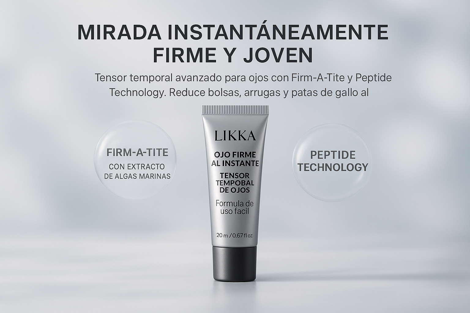 Descubre la eficacia inmediata de LIKKA Firmeza Instantánea de Ojos, un gel clínicamente probado que reduce al instante bolsas, arrugas y líneas de expresión, dejando la mirada más tersa, firme y descansada durante todo el día. Su fórmula avanzada ofrece un efecto lifting temporal que mejora la elasticidad y suaviza la textura del contorno de ojos.
