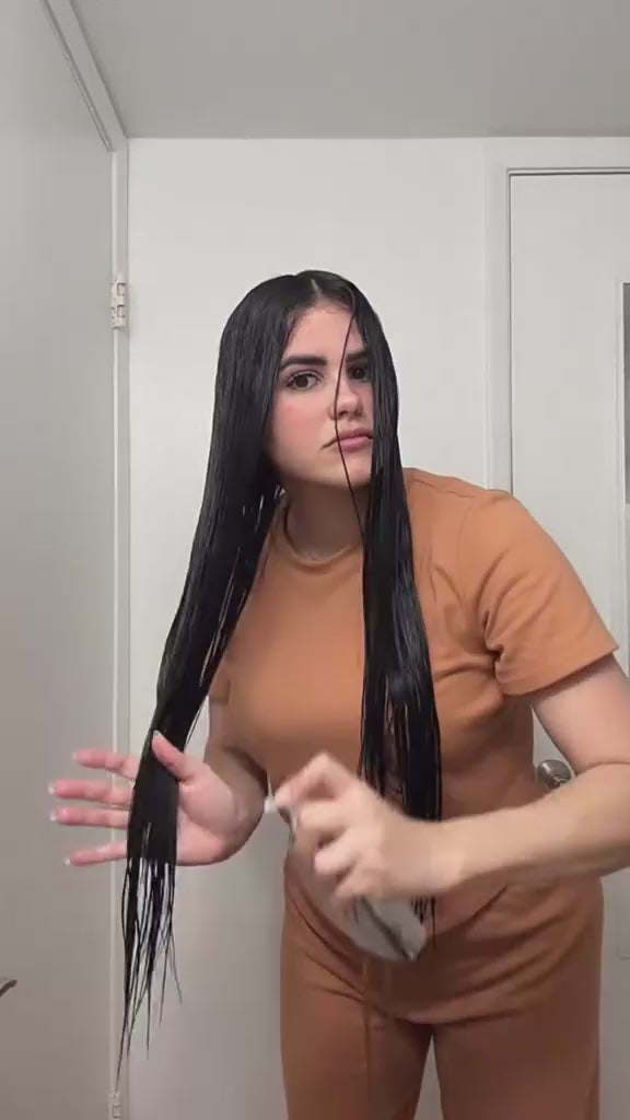 Su textura es ultraligera, no grasa y completamente imperceptible. El cabello se siente sedoso, suelto y con un brillo tipo “efecto espejo”, sin rigidez ni sensación pesada, manteniendo un look natural y pulido durante días.